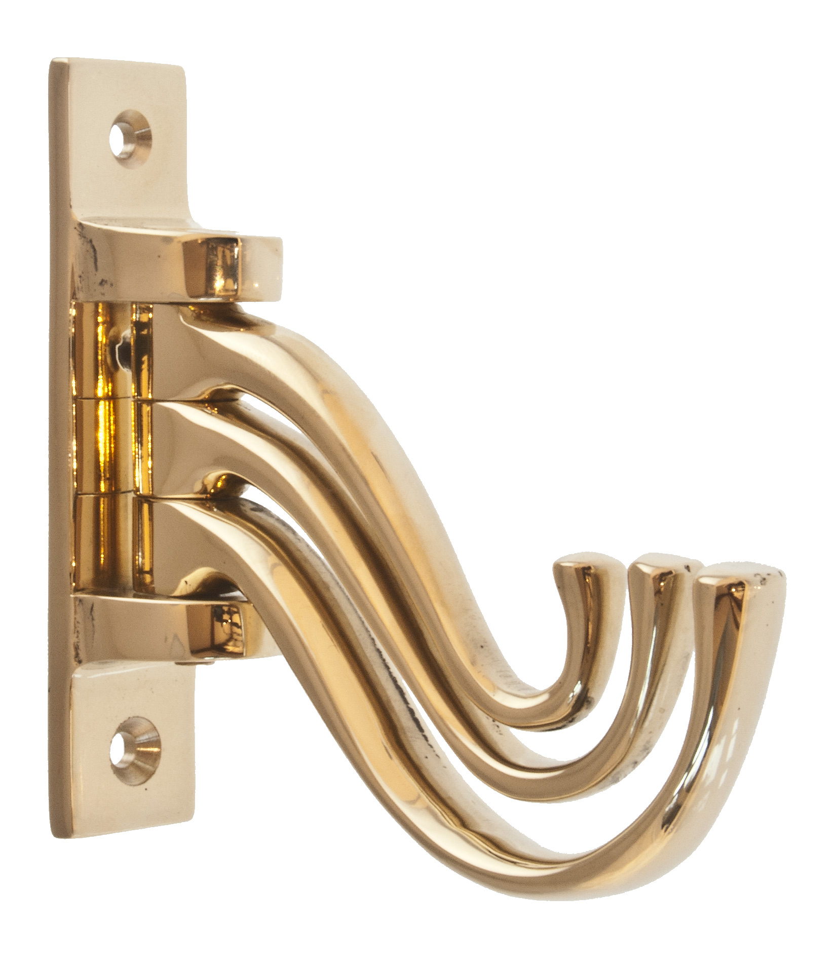Seinään kiinnitettävä kääntyvä messinkinen vaate- ja hattukoukku.