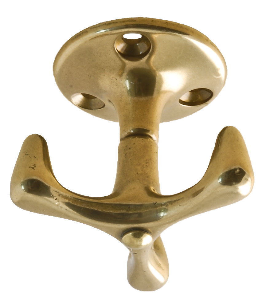Naulakon alapintaan kiinnitettävä pyörivä vaatekoukku, messinkinen.