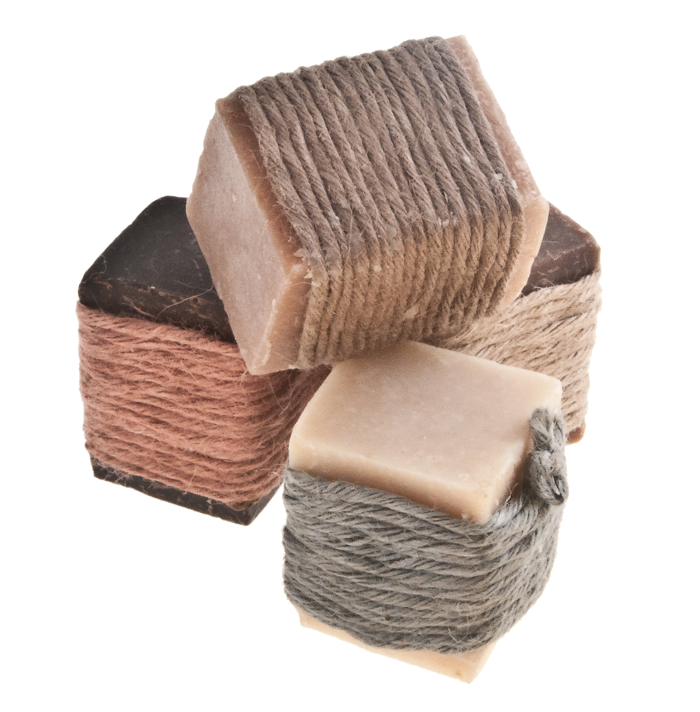 Vuohenmaito, rypsiöljy, palmuöljy, kookosrasva ja tuoksuöljy. Saippuan ympärille on kiedottu juuttinaru.